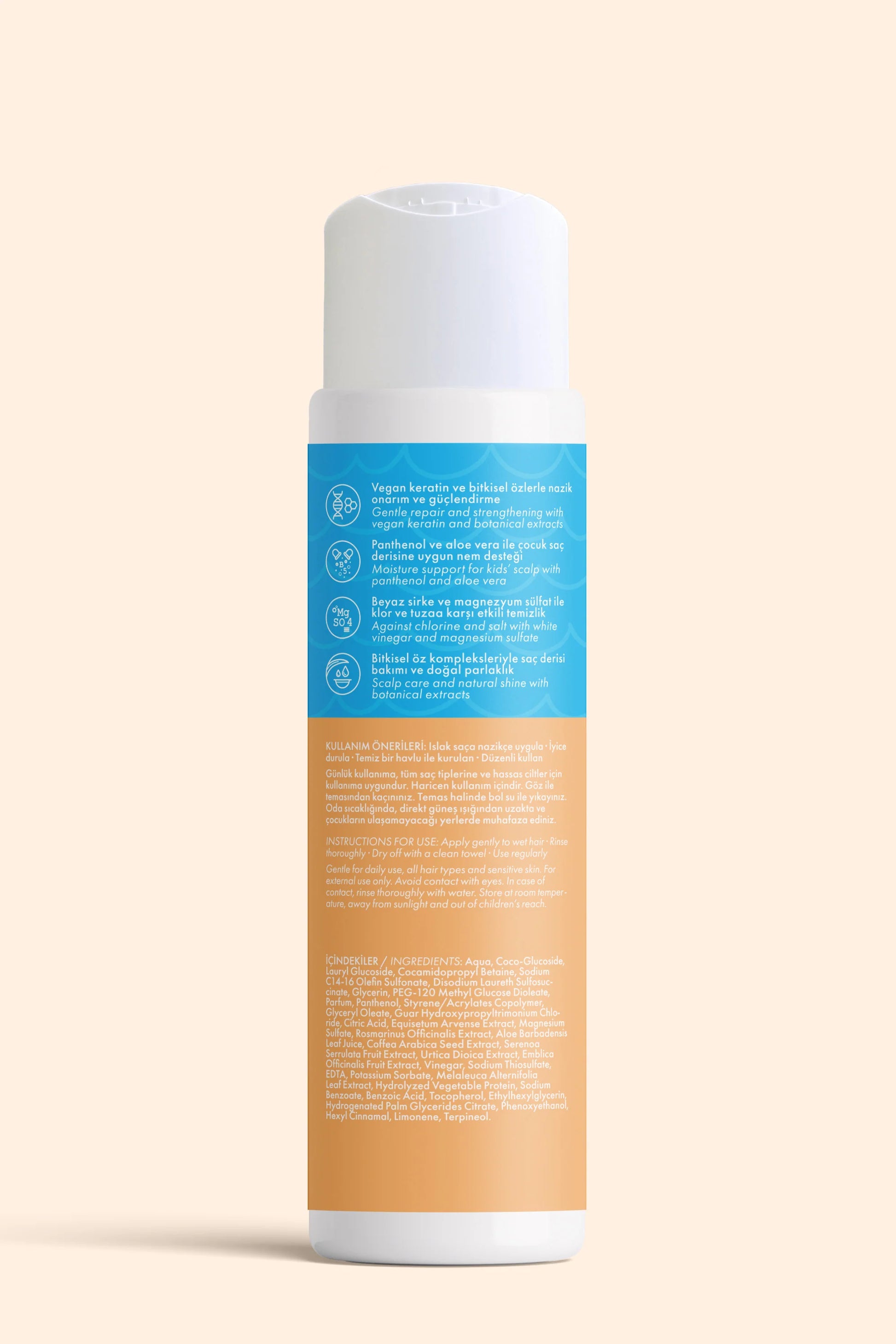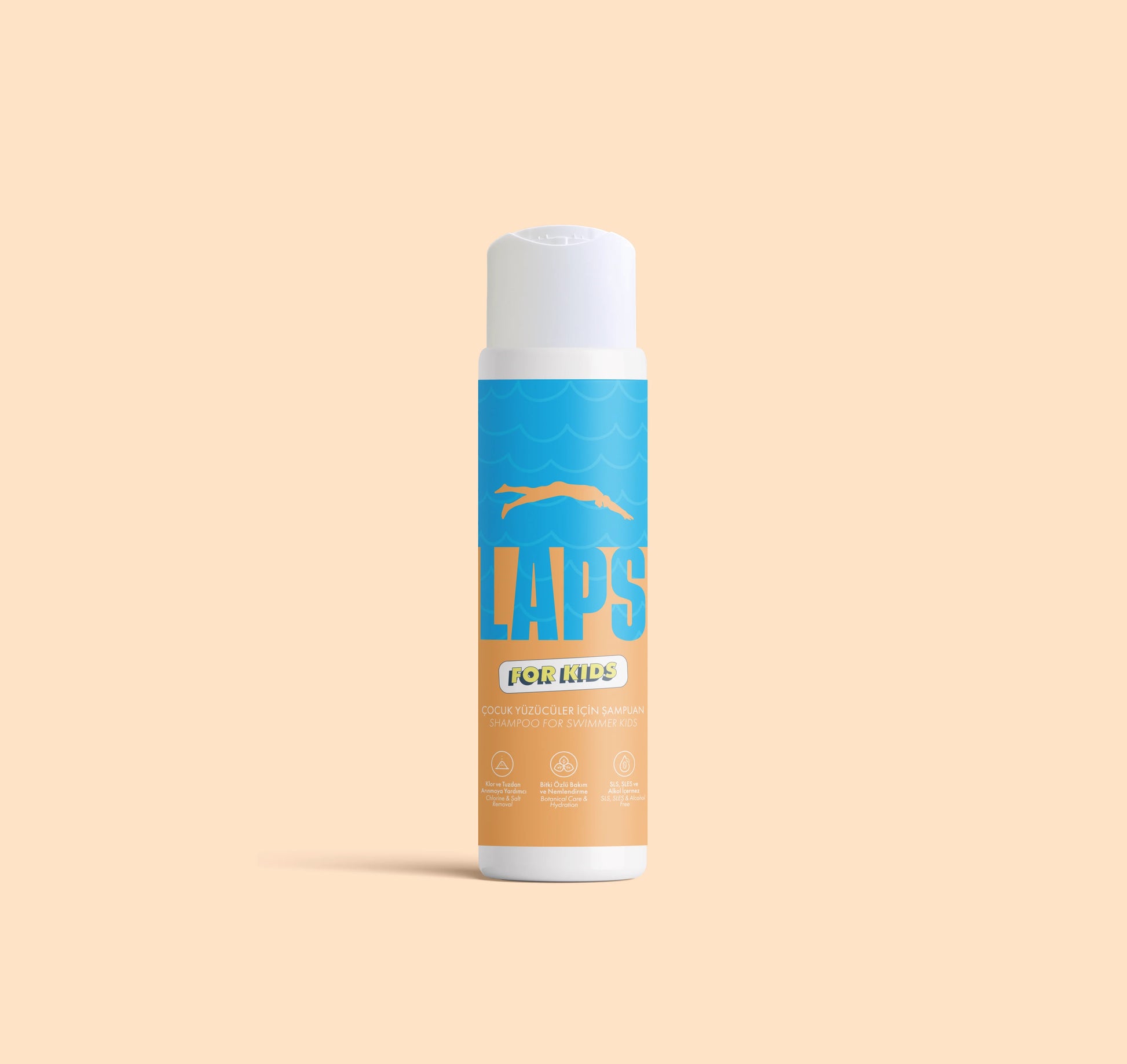 LAPS Çocuk Yüzücüler İçin Şampuan, çocukların hassas saç derisi için özel olarak geliştirilmiş nazik formülüyle, klor ve kimyasal kalıntıları arındırır, saçı yumuşak ve sağlıklı tutmaya yardımcı olur.